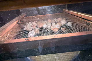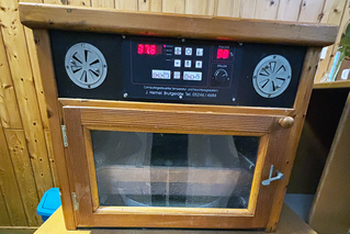 Jeden Tag schauen wir gemeinsam nach den Eiern: Wir kontrollieren die Temperatur und den Wasserbehälter. Und wir drehen die Eier indem wir das Rost nach vorn bzw. nach hinten bewegen am Morgen und am Nachmittag.