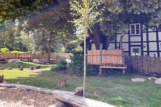 Unsere Wald- und Natur Kindertageseinrichtung in Hiddesen ist ein altes zweistöckiges Kötterhaus. Im Erdgeschoss befinden sich die Räumlichkeiten unserer Kita. Eine große einladende Deele, einen Gruppenraum, einen Schlafraum, sowie Sanitäranlagen und eine Küche. Das Fachwerkhaus und der Außenbereich sind so gestaltet, dass die Kinder sich wohl und sicher fühlen. Das Außengelände bietet den Kindern vielfältige Anreize für unterschiedliche Wahrnehmungen und Erfahrungen sowie Möglichkeiten zur Bewegung, Aktivität, Stille und Entspannung. Das Außengelände als Spiel und Lernort bietet verschiedene Funktionsbereiche für alle Kinder.