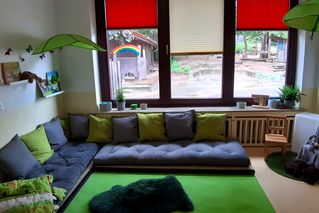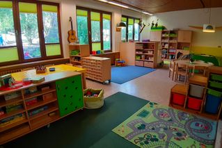 In den jeweiligen Gruppenräumen gibt es unterteilte Bereiche wie z.B. den Frühstückstisch, Spiel- und Bauteppiche, Rollenspielbereich und Kreativecke. Die Spielbereiche und Materialien werden den Bedürfnissen und Interessen der Kinder angepasst.