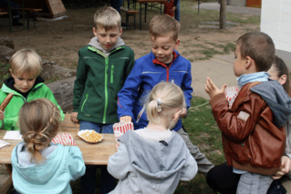Nach dem offiziellen Teil eröffneten die Kinder das Jubiläumsfest. Auf dem Gelände der Kita warteten viele Angebote: Pommes und Bratwurst, Kaffee und Kuchen, Popcorn, eine Tombola sowie eine liebevoll gestaltete Zeitreise durch die Geschichte der Kita Stemmen. Das gesamte Außengelände stand den Kindern als großer Spiel- und Bewegungsraum zur Verfügung.