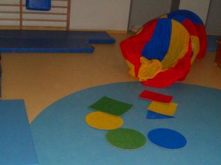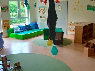 5 Gruppenräume + 5 Nebenräume, 2 Schlafräume, 1 Differenzierungsraum, 1 Begegnungsraum, 5 Waschräume, 1 Küche, 1 Turnhalle, 1 Eingangshalle, 1 Mitarbeiterraum, 2 Abstellräume, 2 Wickelräume, 1 behindertengerechte Toilette mit Dusche, 1 Personaltoilette, 1 Werkhütte