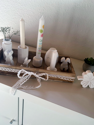 Gemeinsam wurden in entspannter Atmosphäre wunderschöne Vasen, Kerzenleuchter, Osteranhänger, Osterhasen und vieles mehr gestaltet.