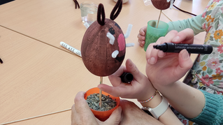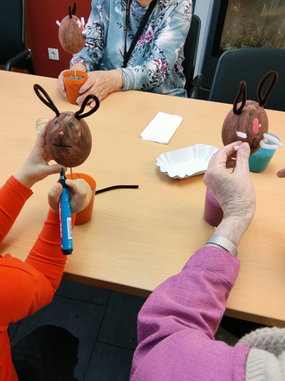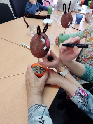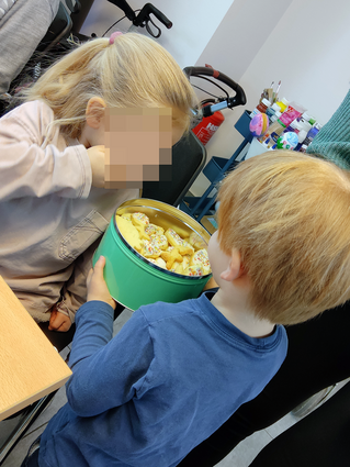 Nach einer herzlichen Begrüßung stellten sich Jung und Alt einander vor. Gemeinsam bemalten, beklebten und verzierten sie Ostereier – eine kreative Aktion, die für leuchtende Augen und fröhliche Gespräche sorgte. Die Kinder hatten zudem selbstgebackene Kekse mitgebracht, die mit Begeisterung geteilt und genossen wurden. Begleitet von Kaffee, Wasser und Apfelsaft entstand eine gemütliche Atmosphäre, in der viel erzählt und gelacht wurde.