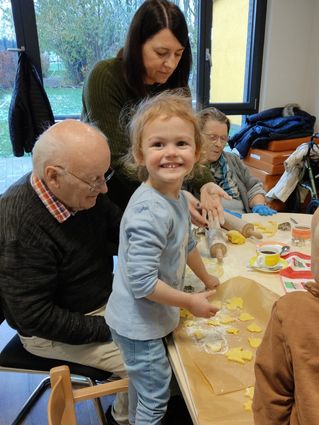 Nach dem Backen teilten die Kinder und Senioren die fertigen Plätzchen auf, damit beide Einrichtungen davon profitieren konnten. So erinnerten die Kekse auch in den folgenden Tagen an diesen gelungenen Vormittag voller Gemeinschaft.