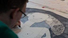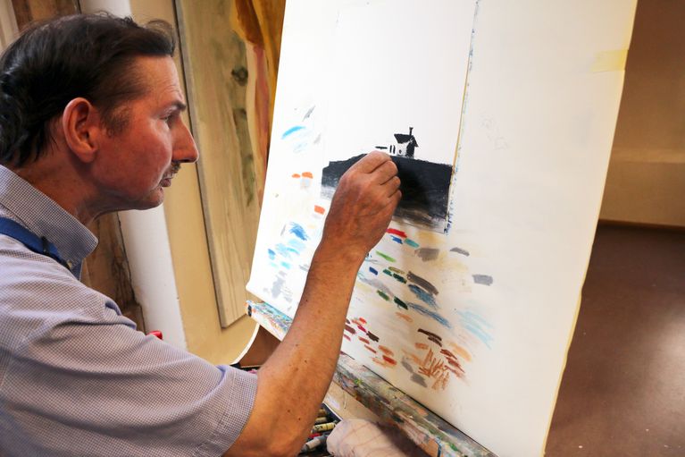 In der Kunstwerkstatt im Haus der Vielfalt können sich die Bewohnerinnen und Bewohner der Stiftung Eben-Ezer frei künstlerisch betätigen. Unter der Leitung des bildenden Künstlers Igor Oster experimentieren sie mit Farben, Papier, Kreide, Tusche und Keramikton. Für Menschen mit geistiger Behinderung ist diese Arbeit von zentraler Bedeutung: Sie erleben hier eine Dimension von Leistungsfähigkeit und Selbstwirksamkeit, die im Alltag oft verborgen bleibt.