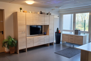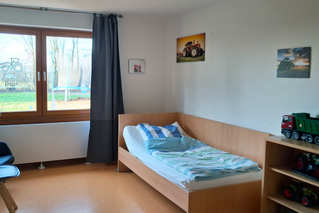 Einen Außenbereich mit Garten im geschützten Rahmen. Außerdem bietet das Haus ländlich gelegene Wanderwege und eine direkte Anbindung an die Werkstätten und Tagesstruktur
