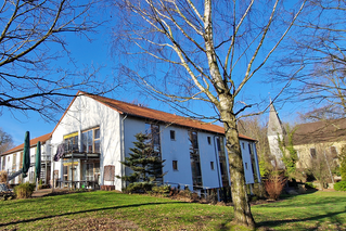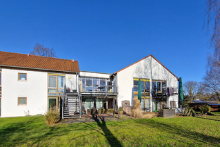 Einen Außenbereich mit großer Parkanlage im geschützten Rahmen. Außerdem bietet das Haus am Rande des Teutoburger Waldes ländlich gelegene Wanderwege und eine nahe Anbindung an die Tagesstruktur. Der Besuch der Werkstätten ist durch einen Fahrdienst gewährleistet.