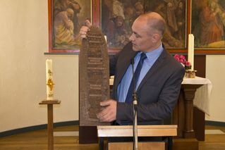 Pastor Dr. Haase mit Aufbewahrungstafel