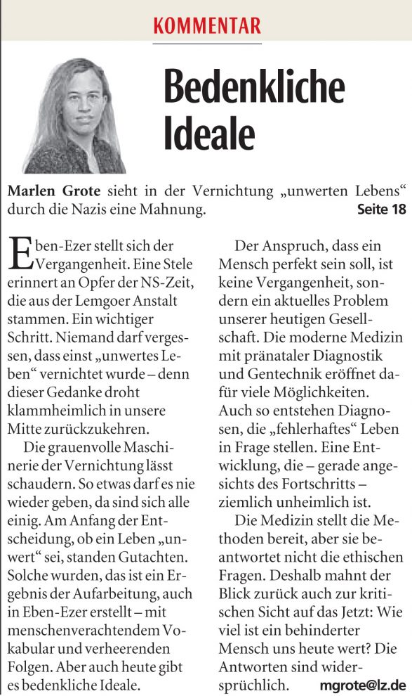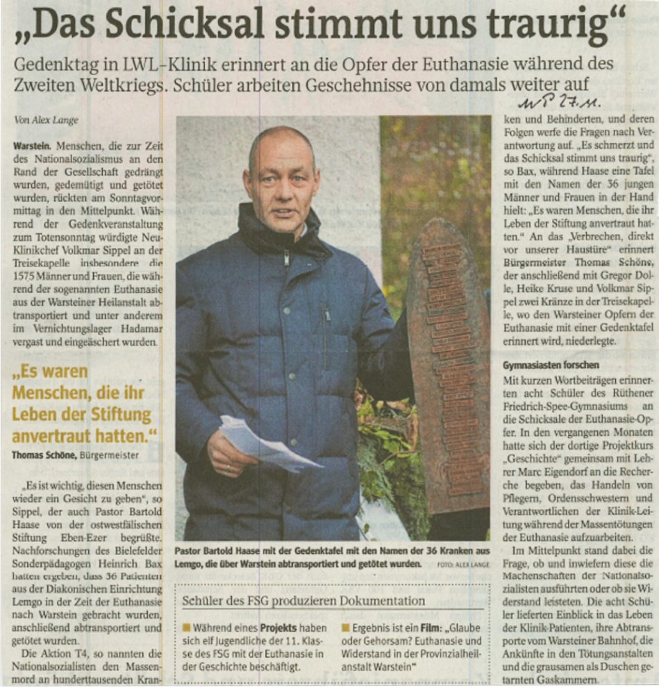 Predigt von Herrn Landessuperintendent Dietmar Arends zur Erinnerung an die Opfer der Euthanasie aus Eben-Ezer